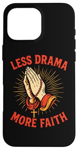 Chapelet avec Citation « Less Drama More Faith » Coque pour iPhone 16 Pro Max