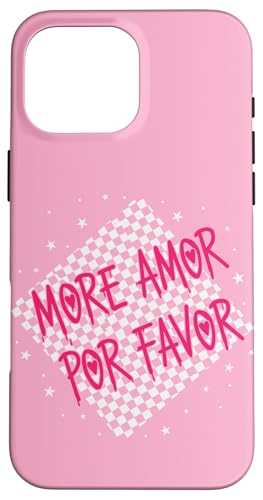 More Amor Por Favor Cœur Motif Damier Rose Coque pour iPhone 16 Pro Max