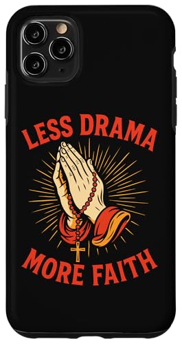 Chapelet avec Citation « Less Drama More Faith » Coque pour iPhone 11 Pro Max