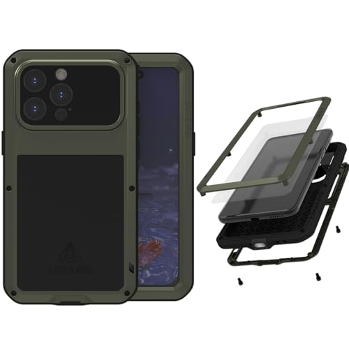 LOVE MEI Coque pour iPhone 15 Pro Max (6.7), Outdoor Sports Heavy Duty Métal Blindé Coque Étanche Antichoc Anti-poussière Full Body Protection Case avec Verre trempé pour iPhone 15 Pro Max (Vert)