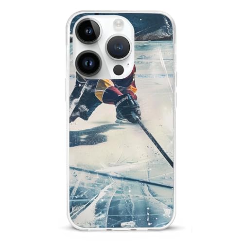 EMPYRI Coque de téléphone transparente pour iPhone 15 Pro Max, sports de hockey imprimée, coque de téléphone en TPU antichoc avec recharge sans fil, résistante aux rayures, anti-jaunissement