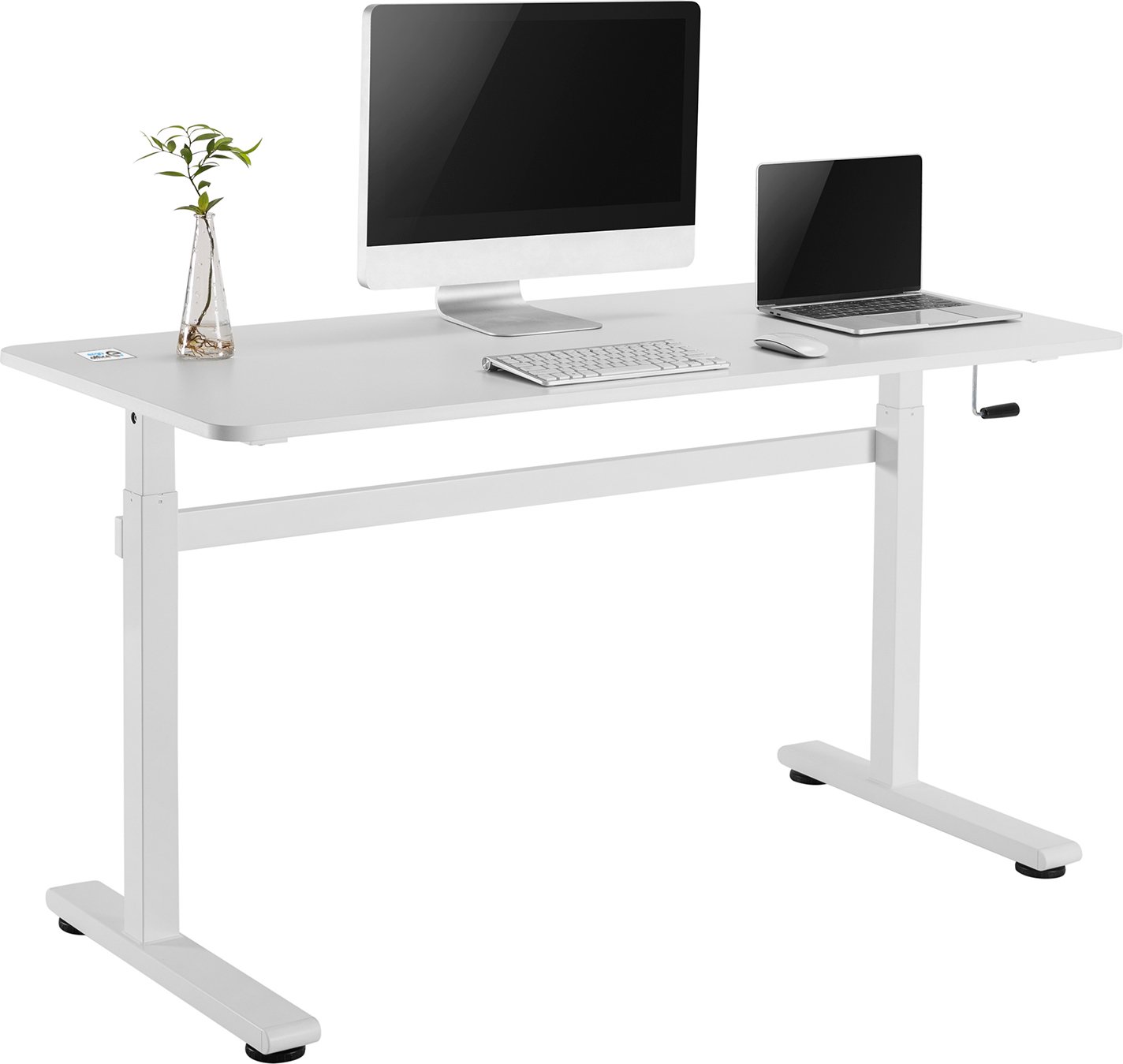 Bureau assis/debout 140x60cm Réglable en hauteur manuellement Table de bureau ergonomique de 117cm maxi Charge maximale de 40kg Blanc
