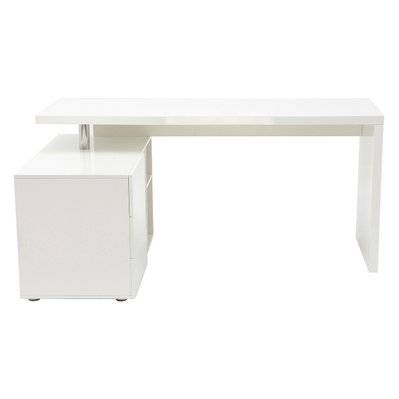 Miliboo Bureau d'angle gauche avec rangements 3 tiroirs blanc laqué L160 cm MAXI - L160xP100xH75