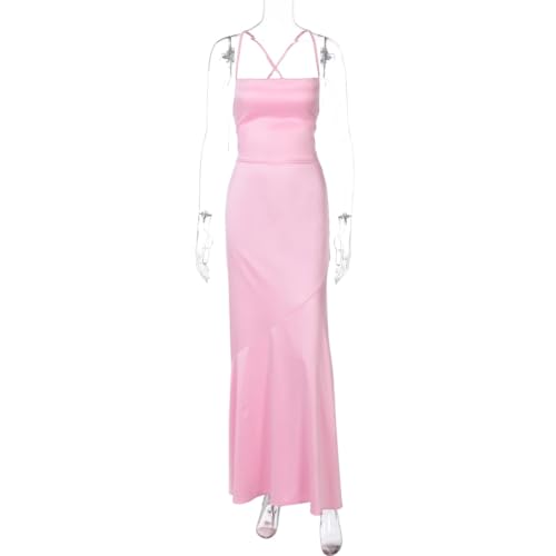 CHENWEIHAI Robe Femme Robe De Soiree Dress Femmes Élégantes À Lacets Dorsal Nu Robe De Bal Maxi Sexy Vêtements Féminins De Mode Vacances D’Anniversaire (M/Rose)