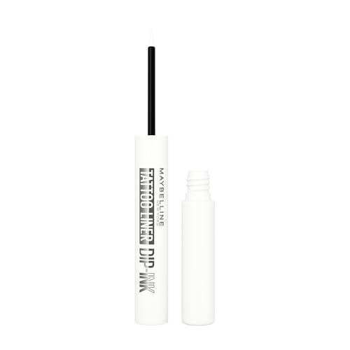 Maybelline New York - Eyeliner Liquide Waterproof - Couleur Intense Tenue Longue Durée 24H - Sans Transfert - Applicateur Feutre Précis - Tattoo Liner Dip Ink - Teinte : White Canvas (blanc)