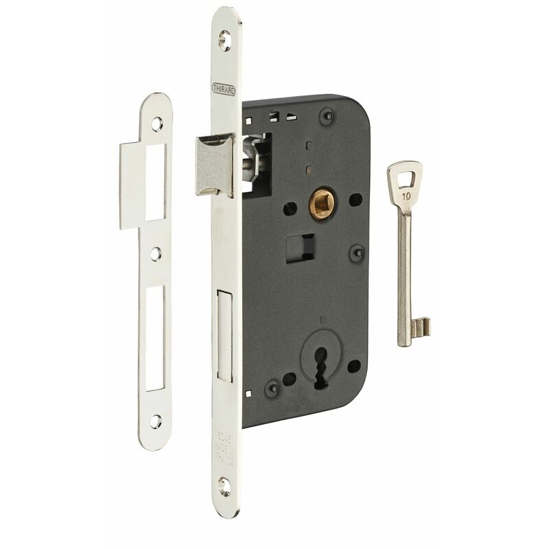 Thirard – Serrure encastrable à clé pour porte de chambre – Axe 50mm – Pêne zingué – 1 clé incluse – Mécanisme 2 tours – Variures 10