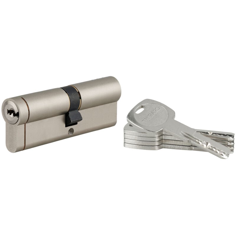 Thirard – Cylindre de serrure double entrée SA 30x65mm – Panneton anti-arrachement – Mécanisme à 5 goupilles – 3 clés en acier nickelé