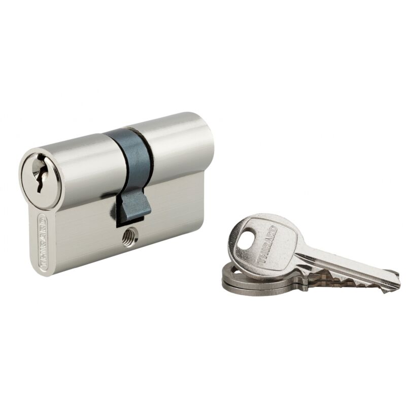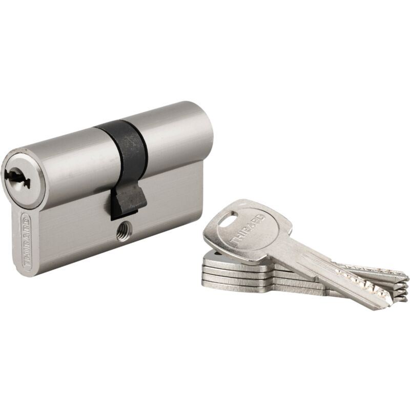 Thirard – Cylindre de serrure double entrée 30x70mm – Anti-arrachement – Mécanisme 5 goupilles – 3 clés en laiton nickelé