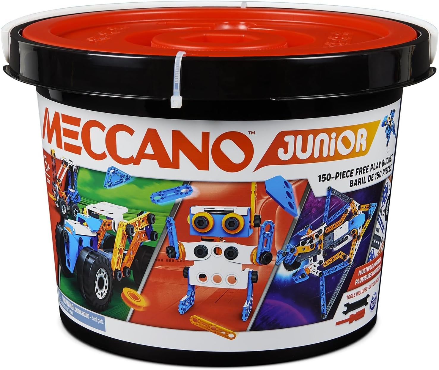 BANDAI Meccano Junior Baril 150 pièces Coffret de Construction 5 modèles