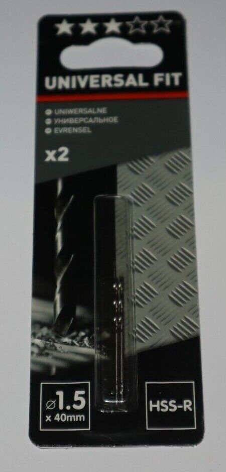 Lot 2 Foret Mèche de Perceuse Métal HSS-R Ø 1,5 MM Longueur 40 mm UNIVERSAL FIT