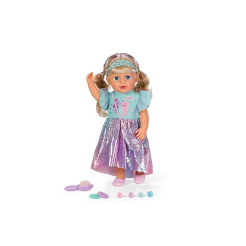 Baby Born Carla Poupée de Style sirène 43 cm avec Cheveux blonds de qualité supérieure avec mèches et articulations du Genou Mobiles pour se Tenir Debout, pour Enfants à partir de 4 Ans, Accessoires