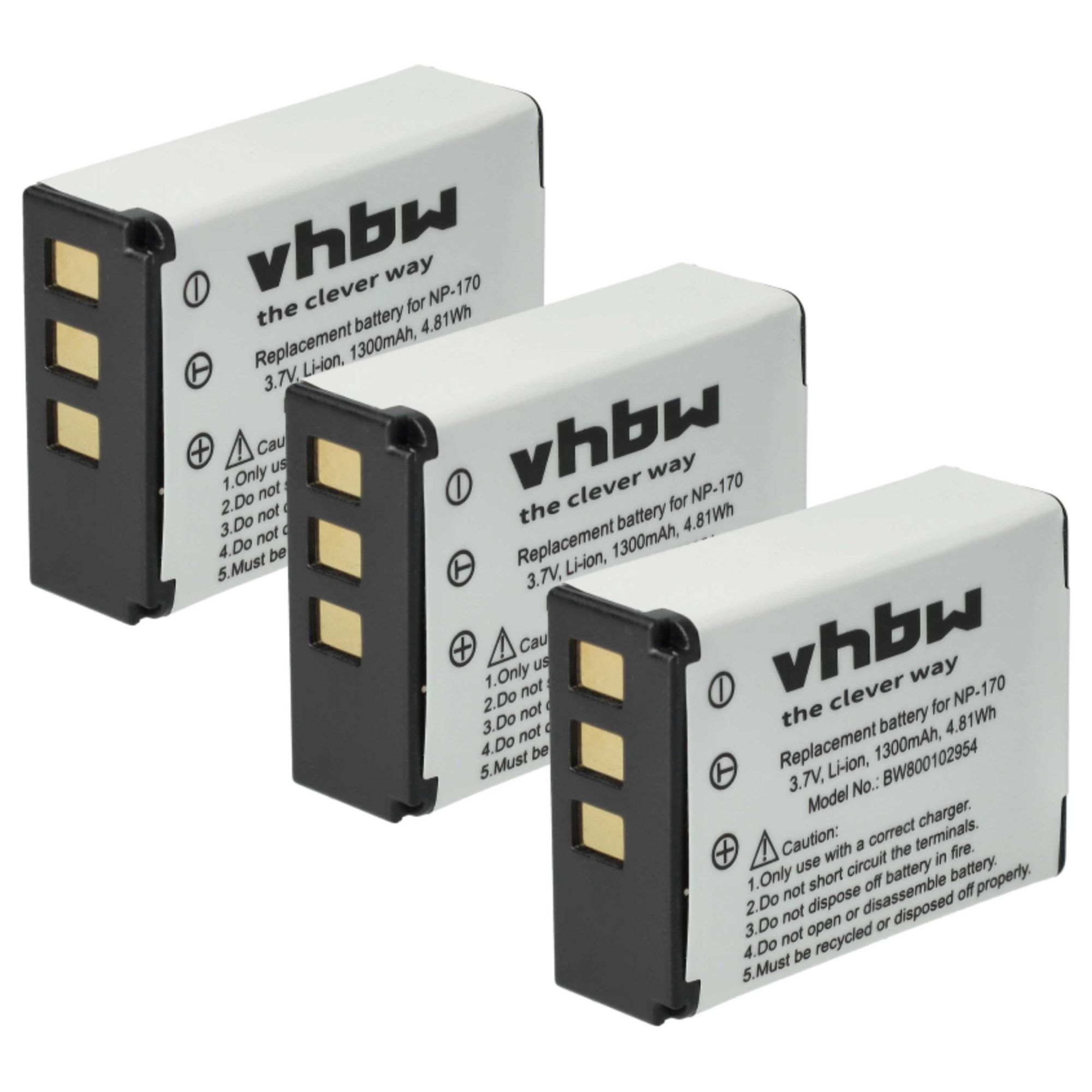 vhbw 3x Batterie remplacement pour Medion NP-170, CB-170 pour appareil photo (1300mAh, 3,7V, Li-ion)