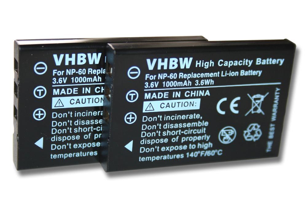 vhbw 2x Batterie compatible avec Medion P47005, MD85961, MD86093, MD85733, MD86064, MD86279, MD88188, MD86461 appareil photo (1000mAh, 3,6V, Li-ion)
