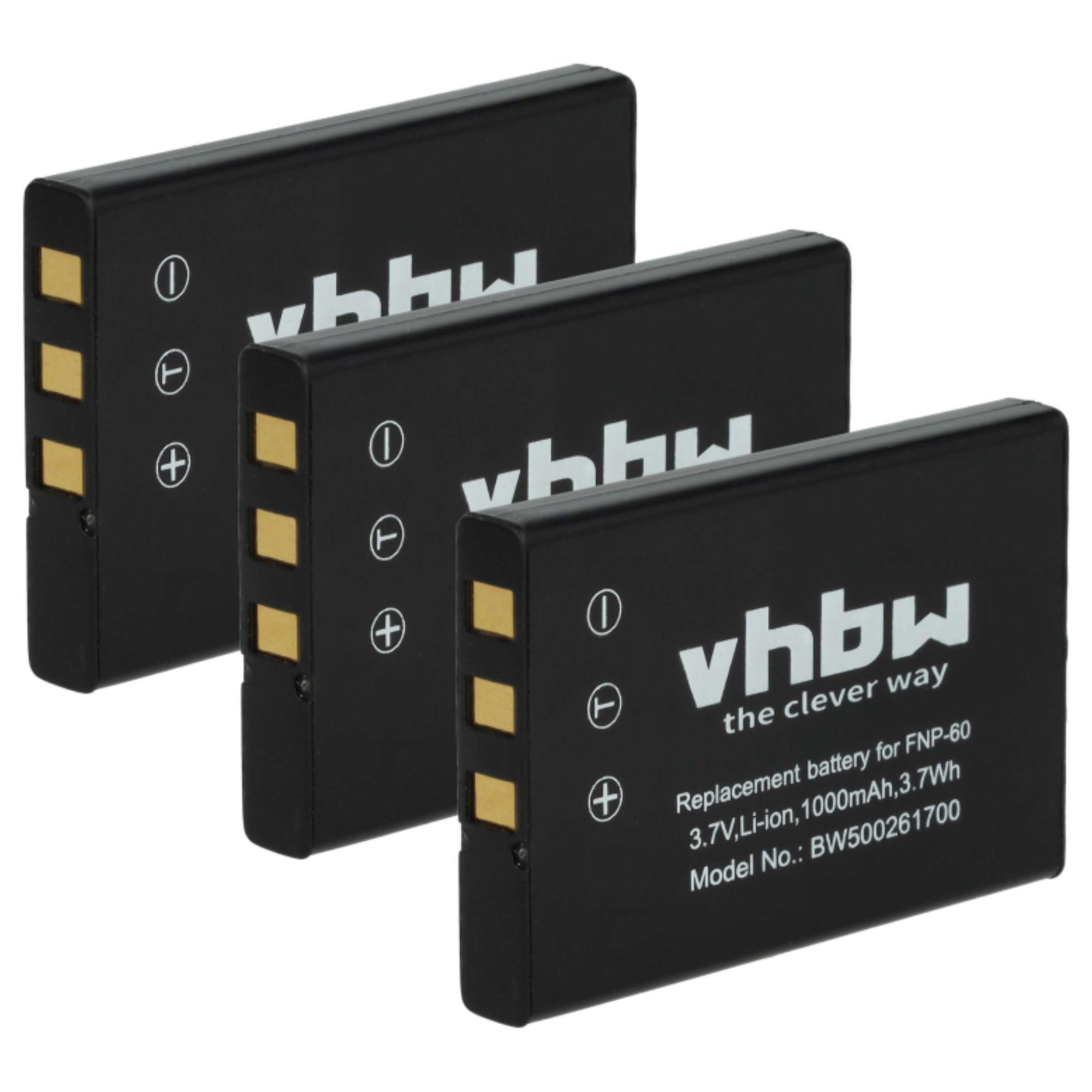 vhbw 3x Batterie compatible avec Medion P47005, MD85961, MD86093, MD85733, MD86064, MD86279, MD88188, MD86461 appareil photo (1000mAh, 3,6V, Li-ion)