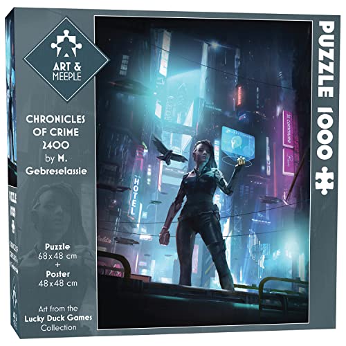 ART&Meeple Puzzle 1000 pcs 68x48 cm Haute Qualité + Poster 48x48 cm, Découpe Originale des pièces, Carton épais contrecollé des 2 côtés avec Papier Vernis – Chronicles of Crime 2400