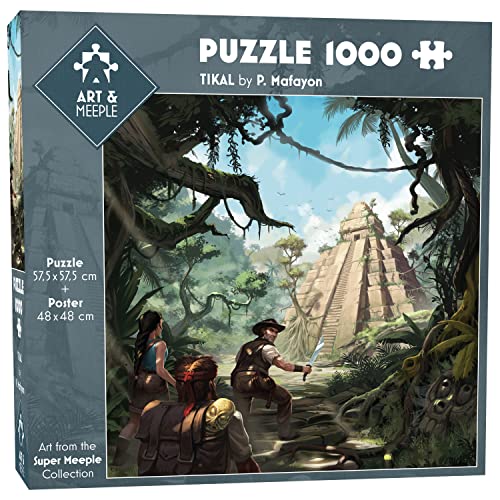 ART&Meeple Puzzle Carre 1000 pcs Haute Qualité 57,5x57,5 cm + Poster 48x48 cm, Découpe Originale des pièces, Carton épais contrecollé des 2 côtés avec Papier Vernis – TIKAL
