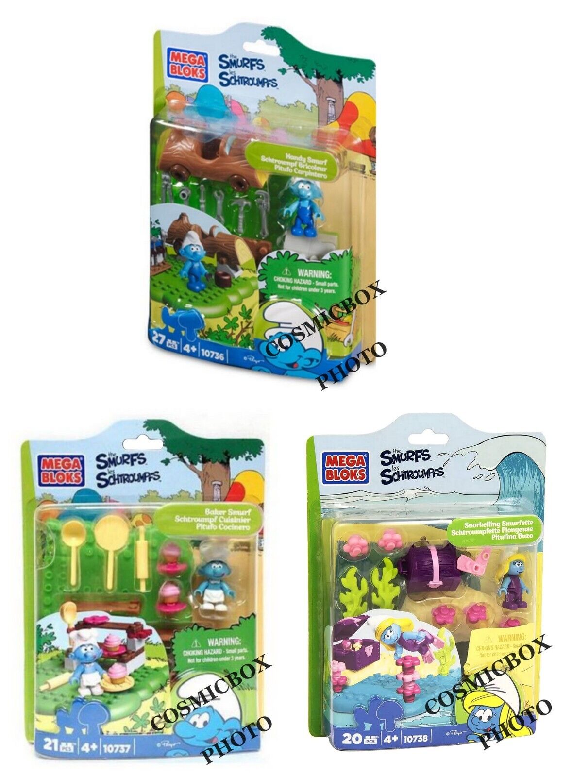 MEGA BLOKS série SCHTROUMPFS lot 3 figurines smurf blister handy baker figures