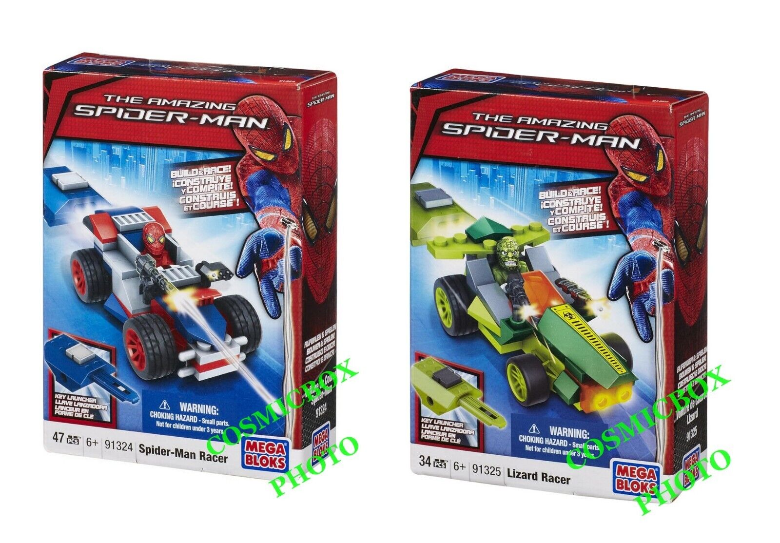 lot 3 coffrets MEGA BLOKS voitures de course SPIDER-MAN & LIZARD racer Marvel