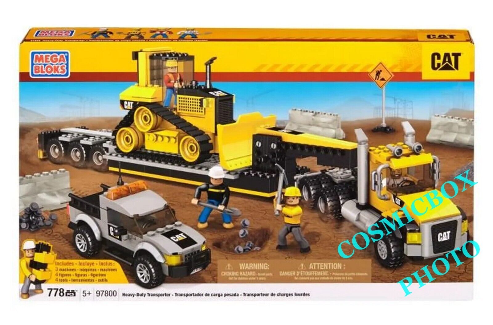 MEGA BLOKS série TRAVAUX PUBLICS - Camion semi remorque Bulldozer 4x4 figurines