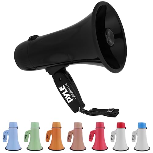 PYLE Haut-Parleur Mégaphone Léger - Mégaphone Porte-Voix avec Sirène Intégrée, Contrôle du Volume Réglable et Portée de 732 mètres