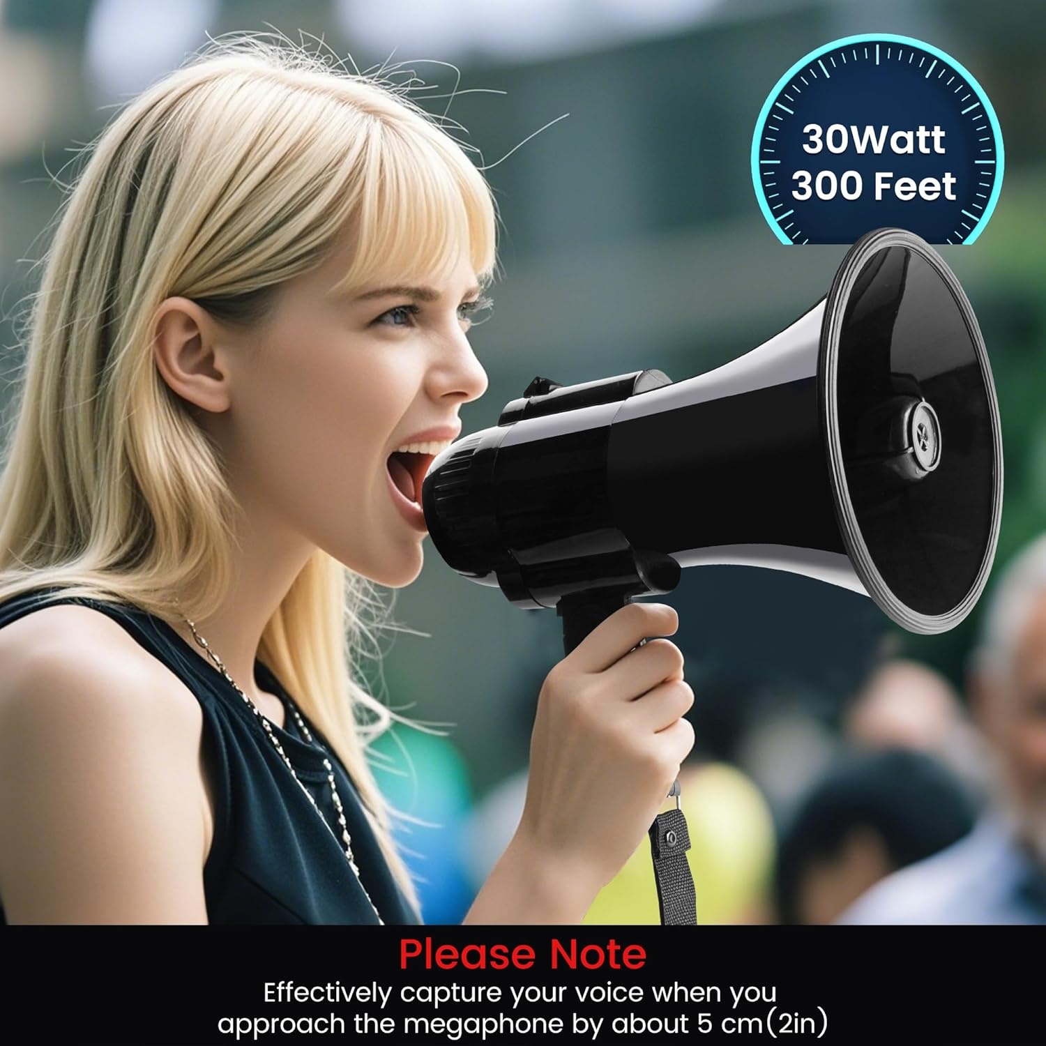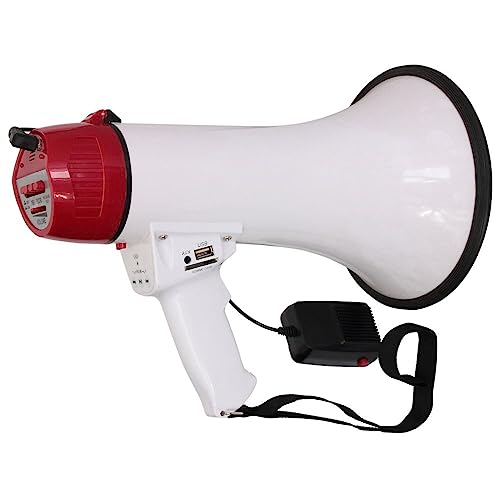 Megaphone Portable 30 Watt Haut-Parleur Voix, Sirene/Alarme et Enregistrement 240S avec Controle du Volume et Sangle