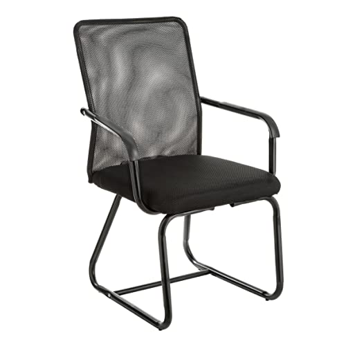 Baroni Home Chaise de Bureau avec Accoudoirs, Dossier Ergonomique en Toile Respirante, Fauteuil en Porte-à-Faux, pour Salle d'attente Max 130 kg, Noir, 92x60x47 cm