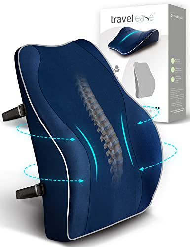 Travel Ease Coussin de Soutien Lombaire Ergonomique, Support Dorsal en Mousse à Mémoire pour Siège de Voiture Chaise de Bureau, Dossier avec Revêtement Antistatique et Double Sangles Réglables, Bleu