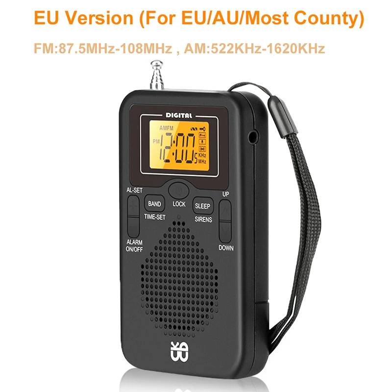 Radio portable avec réveil numérique, mini AM FM, météo, lecteur de poche, écran LCD, longue portée, meilleure réception EU version