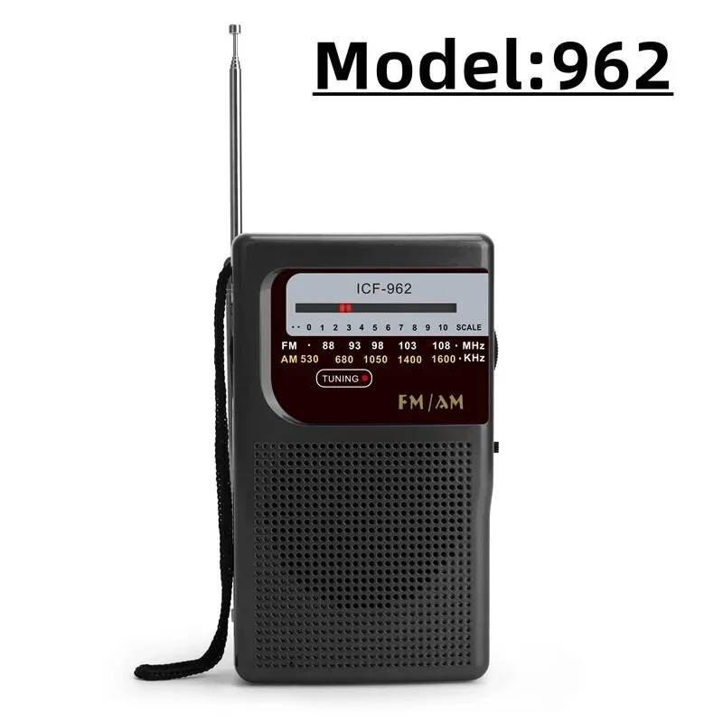 BC-R21/961/962 Mini Radio AM FM Radio Portable à piles plus longue durée meilleure réception pour la marche à la maison Soundbox Black Model 962