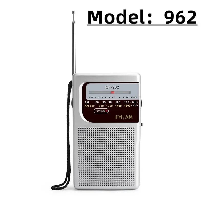 BC-R21/961/962 Mini Radio AM FM Radio Portable à piles plus longue durée meilleure réception pour la marche à la maison Soundbox Silver Model 962