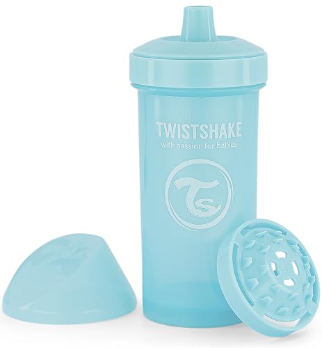 Twistshake Kid Cup – Biberon Anti-Fuite avec Bec Dur et Mélangeur de Fruits 360 ml – Bouteille d’Entraînement pour Tout-Petits – Bouteille d’Eau Anti-Déversement – Sans BPA – Bleu