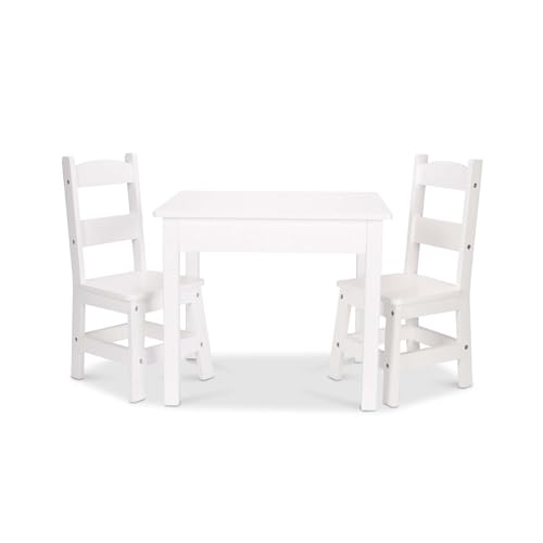 Melissa & Doug Table et chaises pour enfants en bois massif en blanc | meubles pour enfants | meubles en bois massifs | lot de 3 pièces | 72x20x60 cm | Cadeau pour les filles et les garçons | 3+ Ans