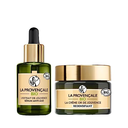 La Provençale Bio – Routine Anti-Âge - Sérum L’Extrait de Jouvence 30 ml plus Crème Or de Jouvence 50 ml – Pour Tous Types de Peau Même les Plus Sensibles