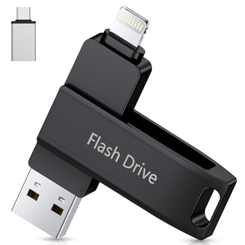 SUDEHO Cle USB iPhone 128 Go MFi Certifiée, 4 en 1 Clé USB C pour iPhone/Pad/Mac/Android/PC, Clef 3.0 Grande Vitesse Flash Drive Mémoire Externe Stick pour Stockage Photos/Vidéos/Musique(Noir)