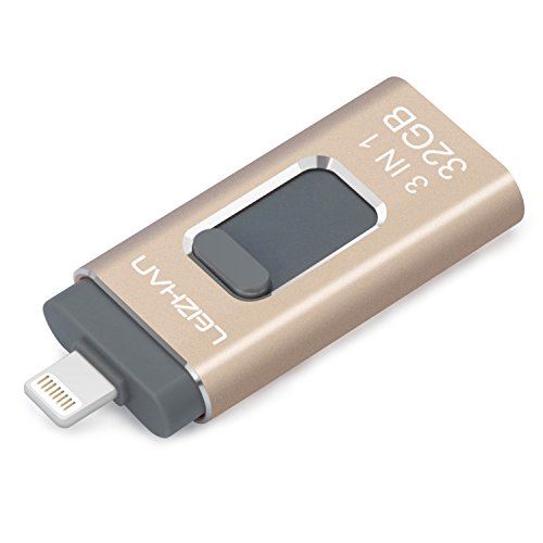 Wponel iPhone Disque Flash USB 2.0 3 en 1 Lightning OTG clés mémoire de Stockage Externe pour iOS Android PC Portables 64 Go doré