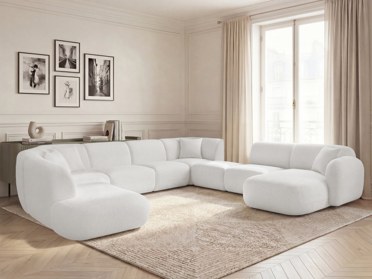 Canapé d'angle modulaire MILYSOFA SOFAMOUS 5 places avec méridienne Tissu chenille Blanc ivoire MOUS