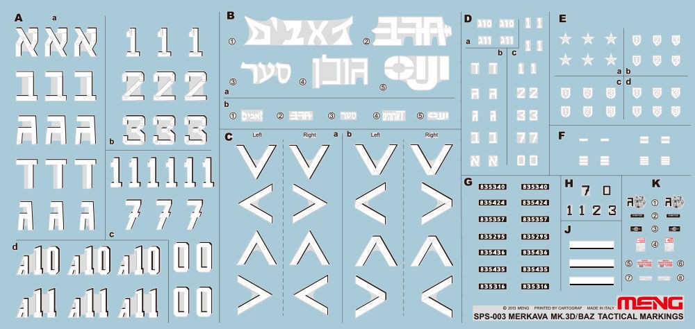 MENG Plance de décalcomanies MERKAVA Mk.3D/BAZ Tactique - 1/35 - MENG SPS-003