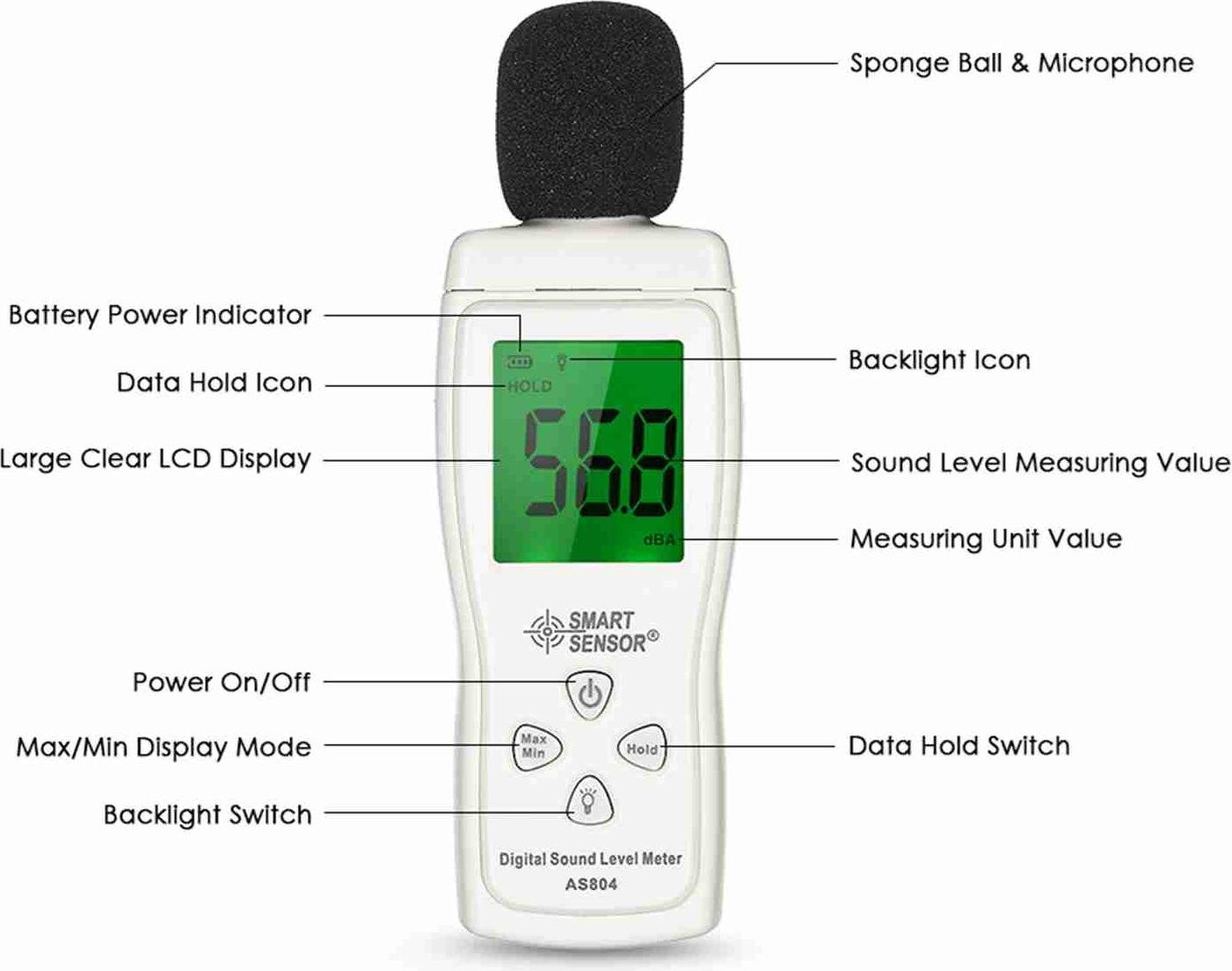 Sonomètre numérique SMART SENSOR ST9604 - Mesure du bruit de 30 à 130 dB - Capteur haute sensibilité