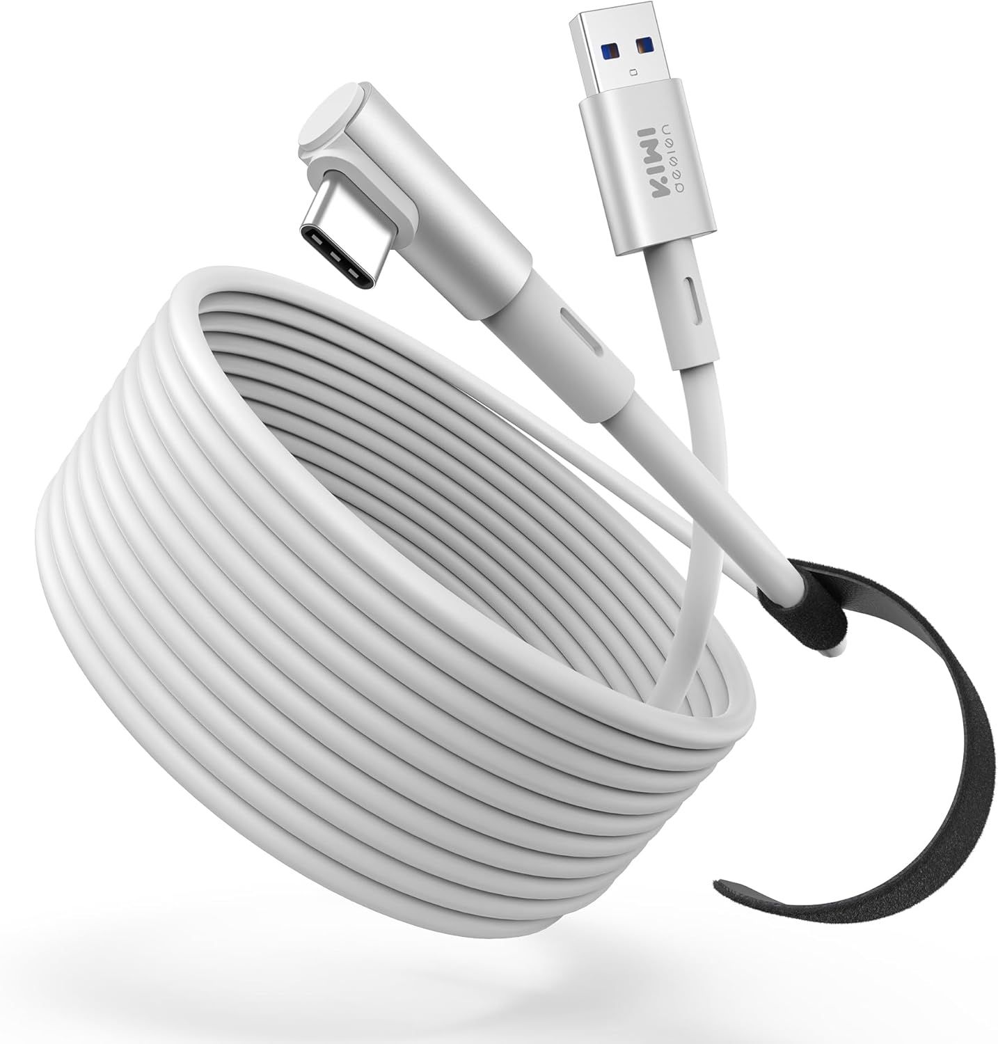 KIWI design 5M Câble Link Compatible avec Meta Quest 3S/Quest 3, Quest 2/Pro/Pico 4 PC Steam VR Accessoires, câble de Liaison USB 3.0 Super Rapide de 5Gbps (Blanc)