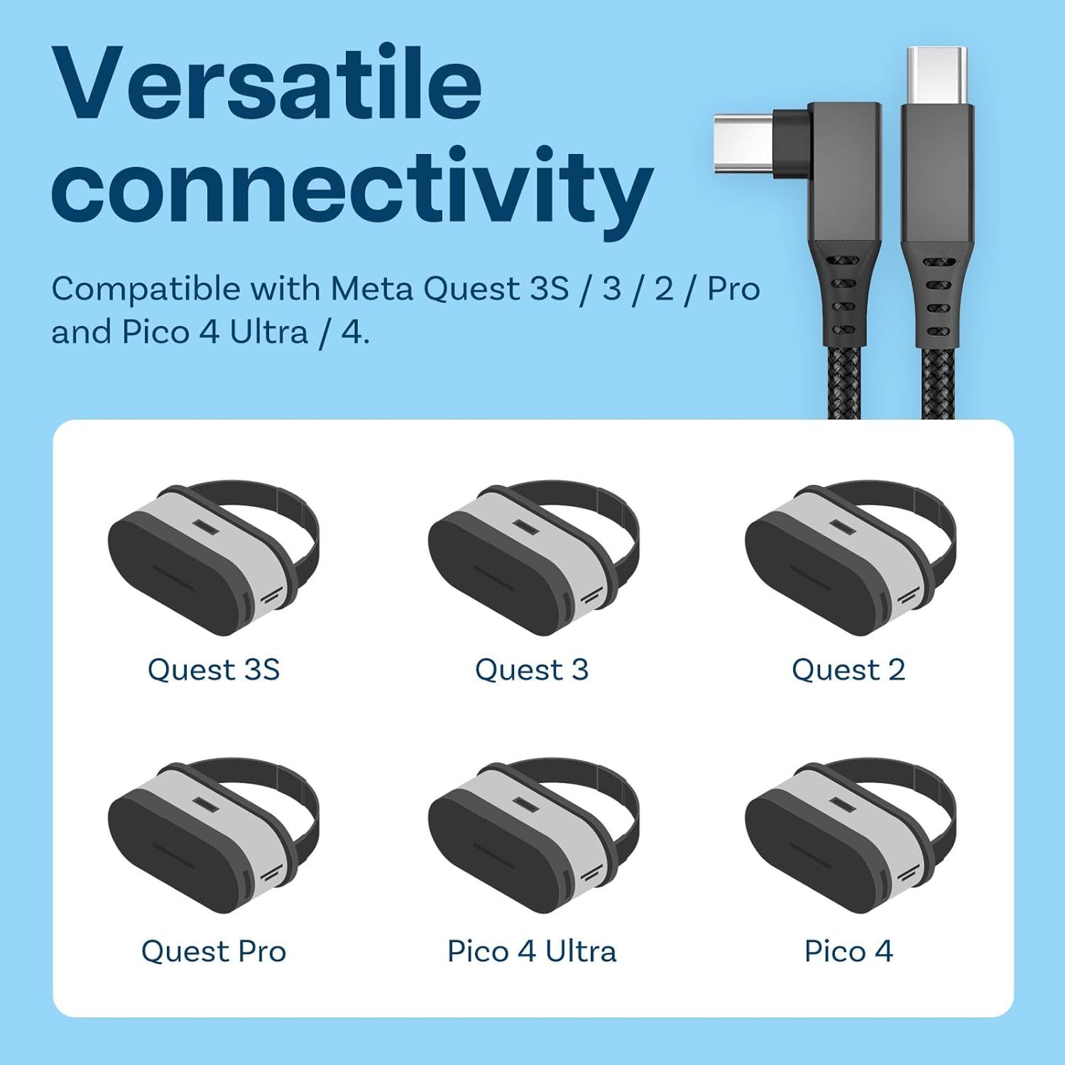 Cable link compatible avec Meta Quest 3S/Quest 3/Quest 2/Quest Pro/Pico 4 pour PC Steam VR Accessoires 5 mètres