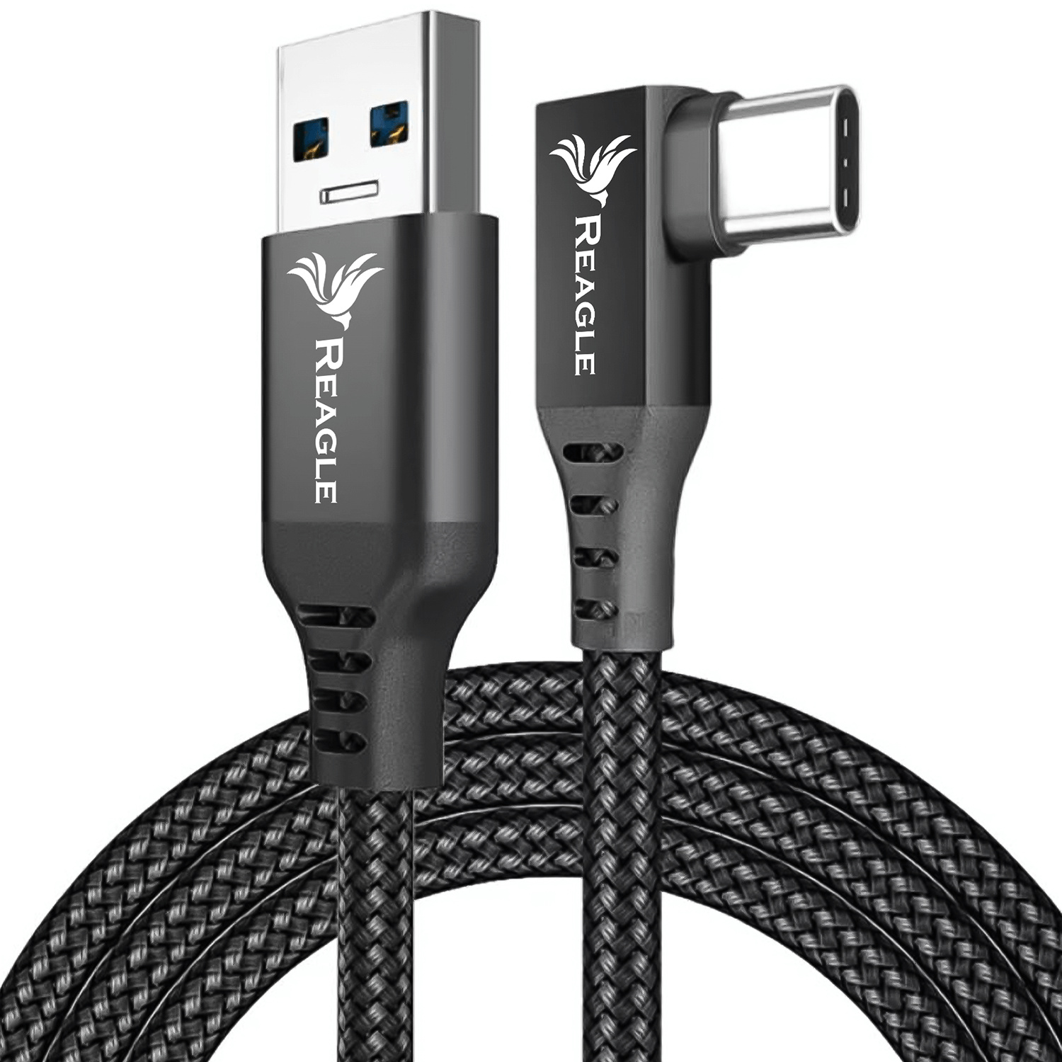 Câble VR Link USB vers USB-C pour Meta Quest 3S / 3/2 / Pro, Pico 4 Ultra / 4 et PC/Steam VR Câble Type-C 90 Degrés Tressé en Nylon pour Casque VR Gaming - 3m - Noir