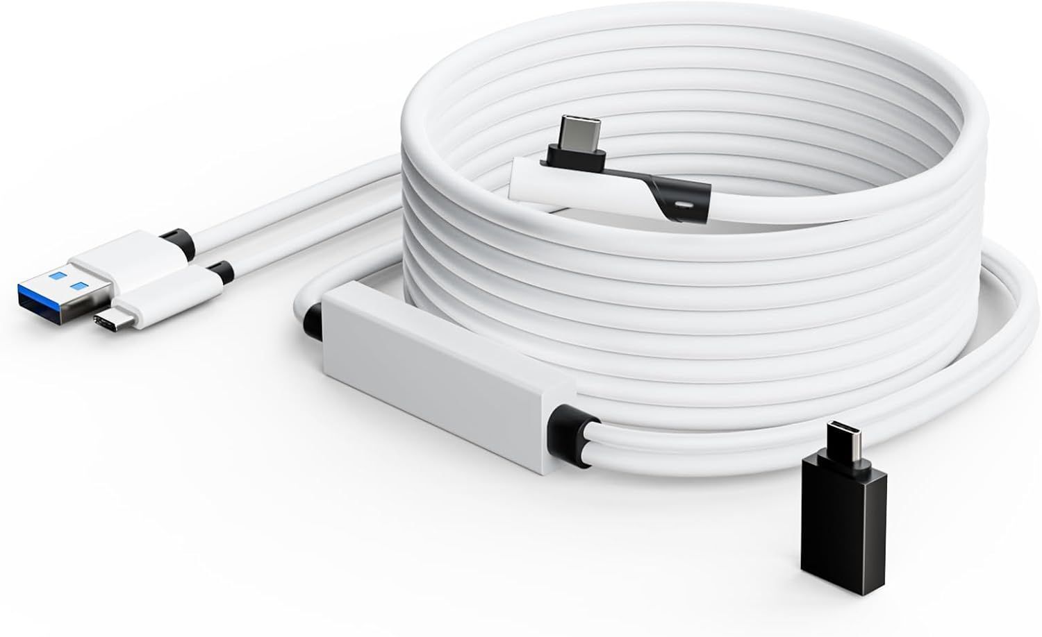 APT-6M Câble Link Compatible avec Meta Quest 3S/Quest 3, Quest 2/Pro/Pico 4 PC Steam VR Accessoires, câble de Liaison USB 3.0 Super Rapide de 5Gbps (Blanc)