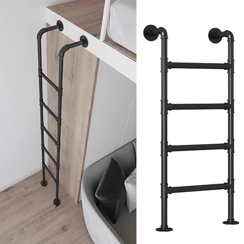 DRFGNF Échelle Universelle en métal Noir pour Lits superposés - Échelle de Sortie en Fer forgé à 3/4/5 marches pour mezzanines et Lits Hauts, 210 cm (83 po), Solution d'accès mu