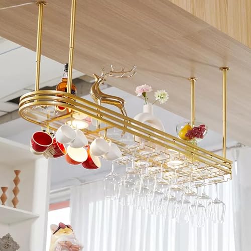 MSHGSKU Étagère à vin Suspendue innovante en métal avec Pendentif en Cristal, Style Industriel rétro, étagère décorative pour Bar, Cuisine et Maison, Support de Verre réglable, Fixation mu