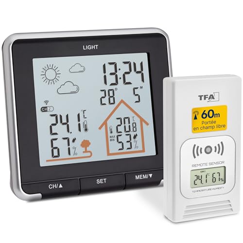 TFA Dostmann Station météo sans Fil METEOchrome, 35.1132.02, Prévisions météo, capteur extérieur, température/humidité dans Maison, Noir