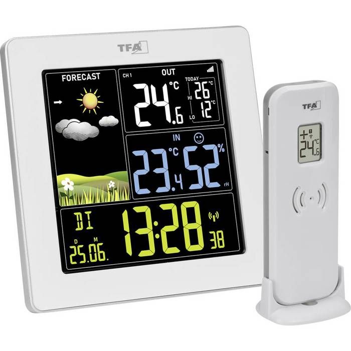 TFA Dostmann Station météo intérieure et extérieure Sun, 35.1133.02 Prévisions météorologiques avec écran couleur Contrôle du climat intérieur, blanc