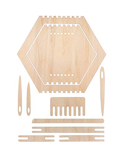 Rayher 63124505 Kit Métier à tisser, nature, 11 pces., FSC Mixed Credit, 12,3-20cm, hexagone, nids d’abeilles, arts créatifs, décoration murale, enfants, adultes, école