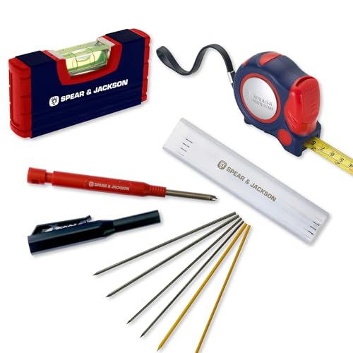 Spear & Jackson DHTS3PS Kit de Marquage et Mesure 3 Pièces – Crayon de Profondeur, Niveau de Poche 100mm & Mètre Ruban 5m – Outils Précis pour Pros & Bricoleurs