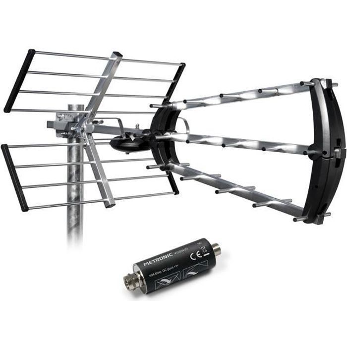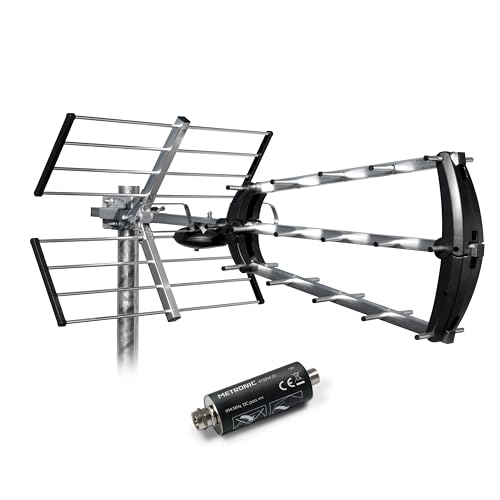 METRONIC 415054 Antenne Extérieur Trinappe 26 DB Filtre 5G 694 MHz Réception TV TNT Signaux DVB-T/T2 4K UHD Montage Toit / Combles