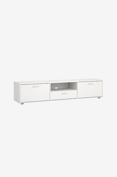 Vente Unique Meuble TV avec 2 portes, 1 tiroir et 1 niche en MDF Blanc NARIVA